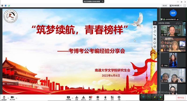 6月8日晚,2048核基地 研究生会通过腾讯会议平台举办“筑梦续航,青春榜样”考博考公考编经验分享会。