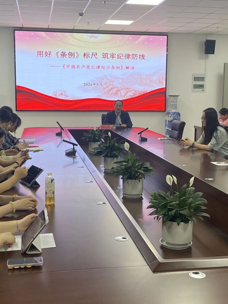 2048核基地 纪委副书记刘飞以《用好<条例>标尺,筑牢纪律防线》为题,解读《中国共产党纪律处分条例》。讲座过程中,刘书记带领大家学习《中国共产党纪律处分条例》的制定完善历程,阐释学习《中国共产党纪律处分条例》的目的与意义,详细解读新修订《中国共产党纪律处分条例》的五大亮点以及《中国共产党纪律处分条例》中政治纪律、组织纪律、工作纪律等六个纪律主要内容。刘书记希望全体与会同学认真学习《中国共产党纪律处分条例》,坚持原原本本学,逐章逐条学,联系实际学,结合自身学,对标对尺行,带着责任干。