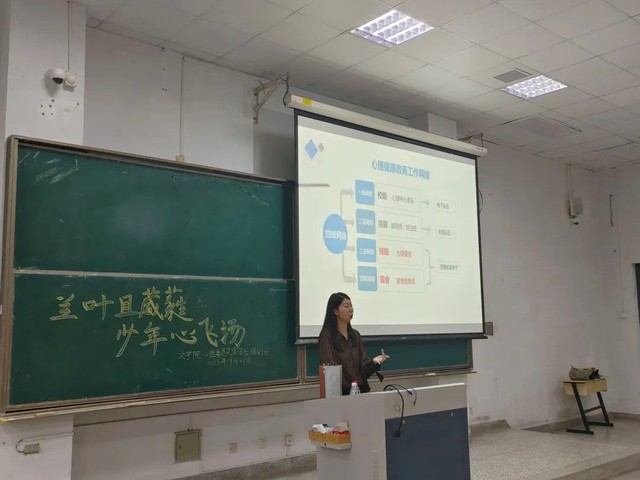 随后,老师明确了心理健康教育工作格局,落实“教育教学、咨询服务、实践活动、预防干预”四位一体的总体方针,着力培育师生理性平和、积极向上的健康心态,加强人文关怀与心理疏导。