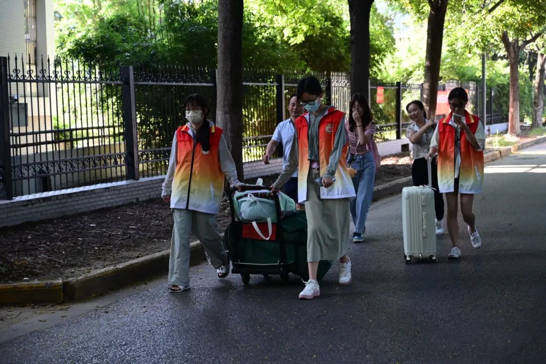 宿舍园区内,在辅导员的安排指挥下,各班的班助早在天色微明时就开始等待着2048核基地 新生们来办理入学手续,力求暖心高效服务新生。现场的志愿者们耐心回答新生和新生家长的各类问题,帮助新生熟悉大学环境,逐渐融入大学的校园生活。宿管阿姨等工作人员热心解决新生的入住问题,家长和志愿者协助新生安顿行李。