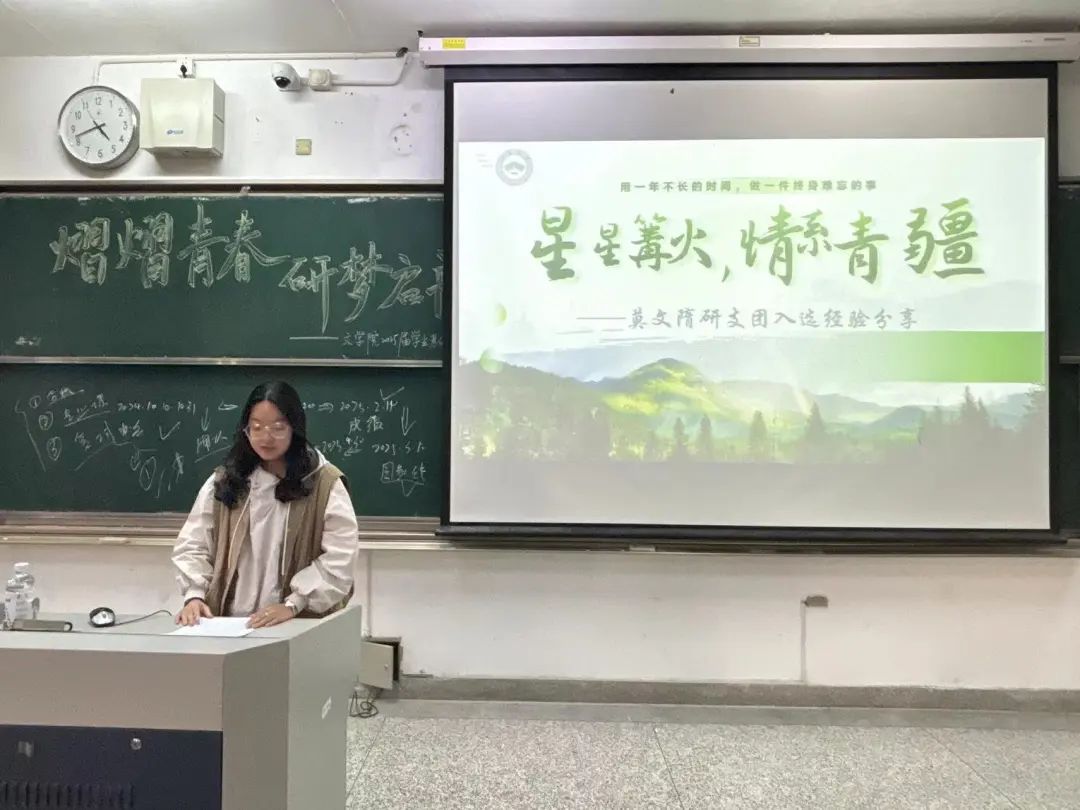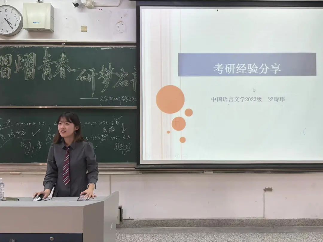 中国语言文学23级硕士罗诗玮为同学们分享了考研规划、考研经验等,并从考研各科分数占比向大家强调时间管理的重要性。校莫文隋研究生支教团成员、历史202何心钰从自我介绍、心路历程、经验分享三个方面对研支团保研经历进行分享,为想要通过支教进入研究生学习阶段的同学们提供了宝贵经验。