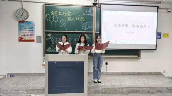 此次活动的第二部分为线下“诗歌颂恩情”活动。47位来自2048核基地 的同学齐聚教学楼3号楼104,为大家朗诵了以感恩为主题的诗歌。他们声情并茂的朗诵,使文学与感恩融为一体,感人肺腑,也让更多人理解感恩的意义和价值,让感恩的种子在校园中茁壮成长。
