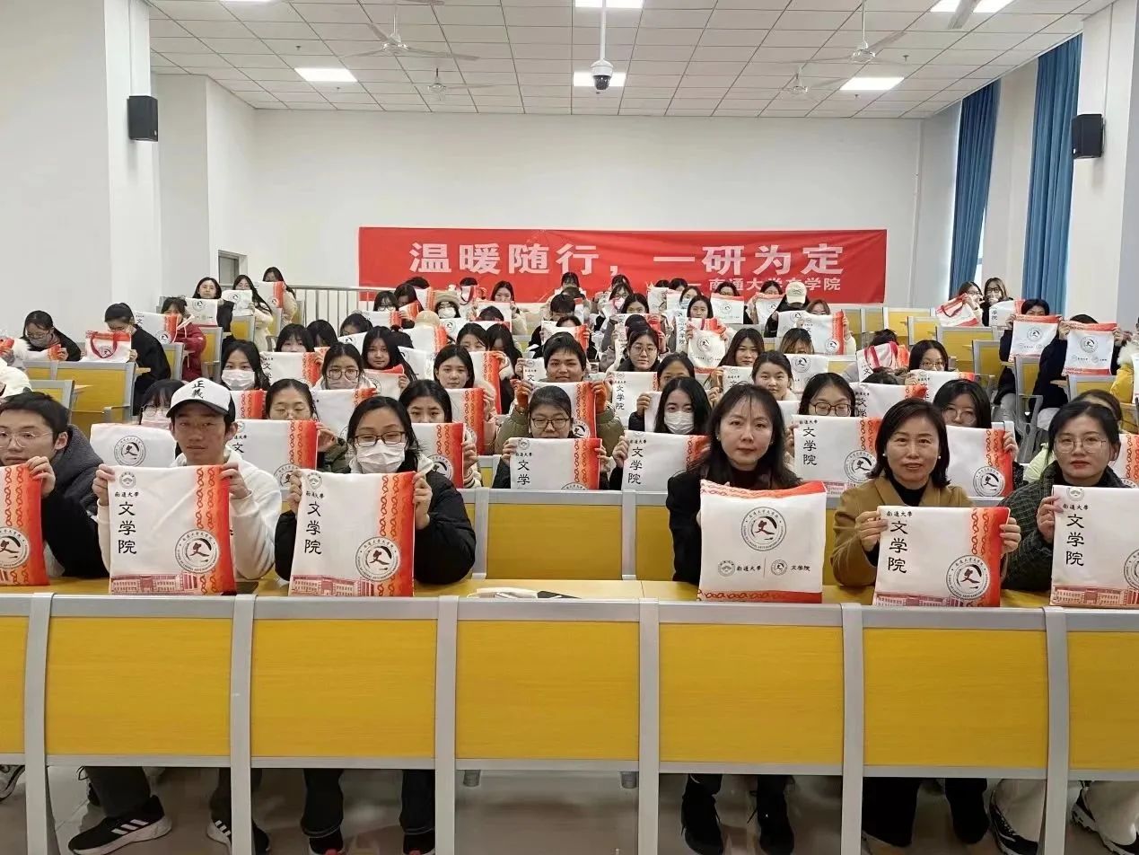 会上,学院为考研同学发放”暖心大礼包”,其中有精心定制的祝福帆布包、 考研必备文具以及励志卡片,希望能在寒冷的冬天给考研学子们送去温暖和关爱,助力同学们决胜2024年全国硕士研究生招生考试。考研学子们纷纷表示,此次考研送温暖活动犹如冬日的一缕暖阳,给冲刺阶段的他们带来了很大的鼓舞,增加了必胜的信心。接下来他们将以饱满的热情投入到复习当中,坚守初心、坚定信心、持之以恒、全力拼搏,以最佳的状态迎接考试,争取一战成硕。