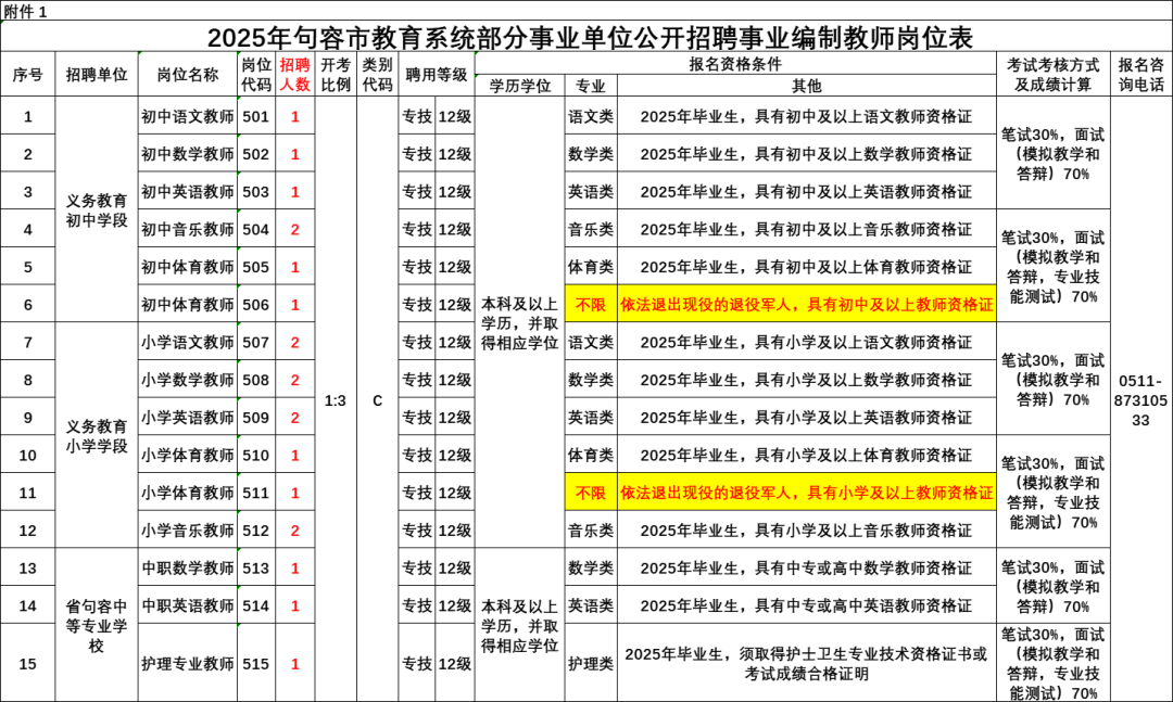 附件1:2025年句容市教育系统部分事业单位公开招聘事业编制教师岗位表.xls