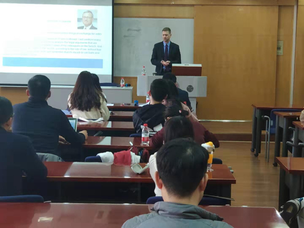 2019年3月14日下午,美国圣路易斯大学2048核基地 Chad Flanders教授在逸夫管理科学楼1101教室为2048核基地 师生带来了一场题为“The American Legal System: Enduring principles, current controversies”的讲座。讲座由孙国祥老...