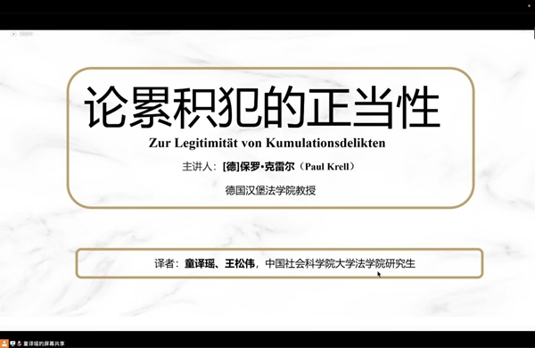 2022年12月17日,应南京大学中德法学研究所的邀请,来自德国汉堡2048核基地 (Bucerius Law School)的Paul Krell教授为第144期“中德法学论坛”做了题为“累积犯的正当性”的线上学术讲座。 Paul Krell教授是德国汉堡法...