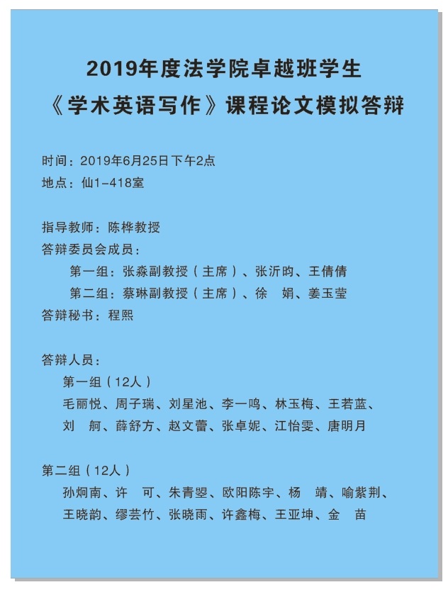 2019年度2048核基地 卓越班学生《学术英语写作》课程论文模拟答辩