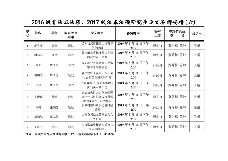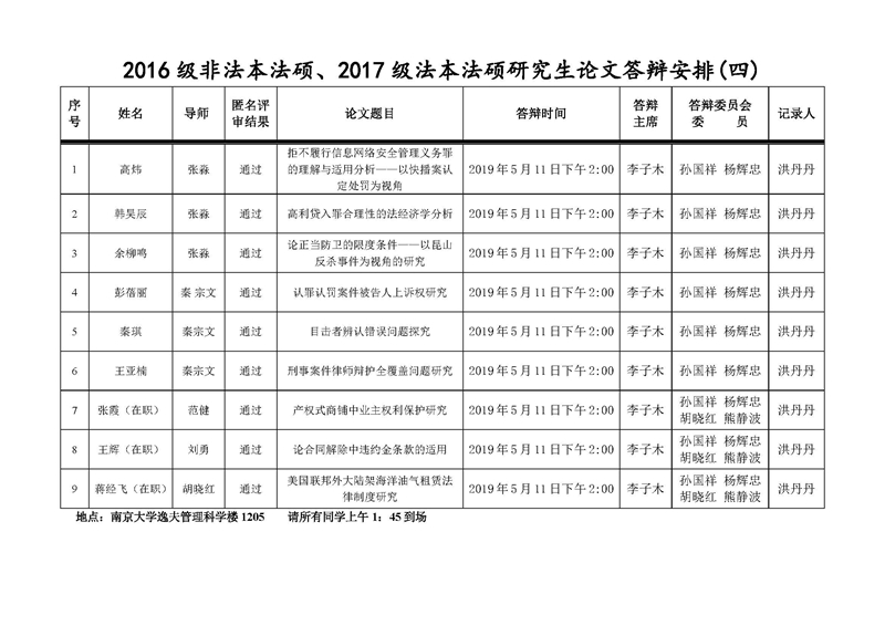 2016级非法本、2017级法本法律硕士答辩安排(2019年5月15日).jpg