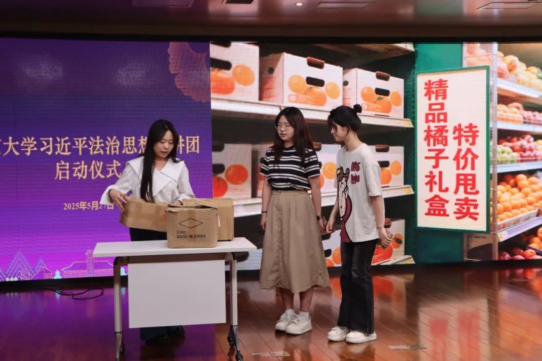 青年志愿者协会组织志愿者现场进行法治情景剧表演。“当我开始捍卫我的权益”和“反诈风云之校园卡影”两个主题情景剧的演绎绘声绘色,将消费者权益保护、反网络诈骗等法律知识融入趣味演出,彰显法治教育形式创新化、内容生动化。