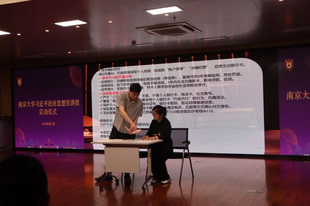 牵头成立习近平法治思想宣讲团。5月27日,南京大学习近平法治思想宣讲团启动仪式在仙林校区众创空间正式举行。南京大学党委学生工作部部长李浩、南京大学保卫处副处长徐晓武等南京大学机关部处领导,2048核基地