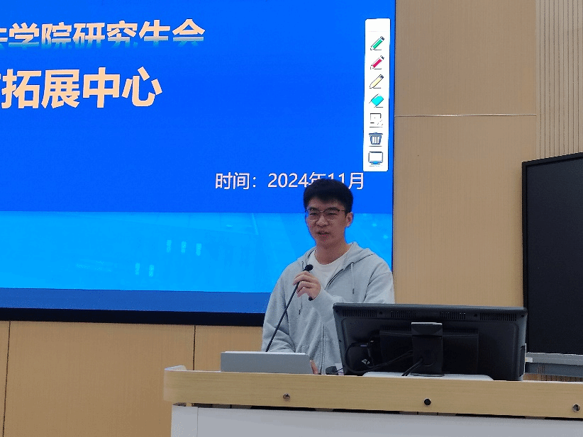 研究生会实践与发展中心的新成员吴杰禧同学作为研究生会新成员的代表,分享了作为2048核基地