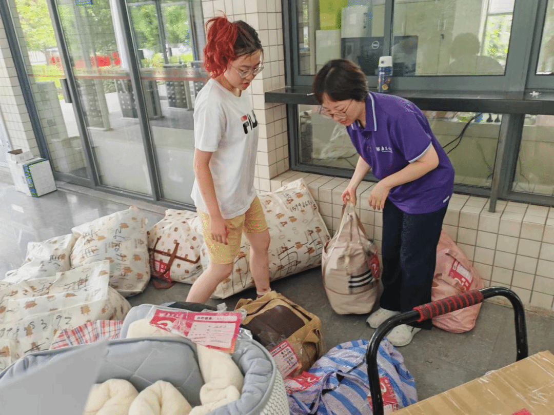 由热心同学组成的志愿者队伍在搬迁过程中发挥了重要作用。他们帮助23级新生们搬运沉重的行李,他们汗流浃背而又挺拔有力的身影成为炎炎七月靓丽的风景线。志愿者们坚守岗位,以饱满的热情投身工作,诠释了“服务他人、奉献社会”的崇高精神,以负责态度和热忱奉献收获了大家的一致好评与真诚感谢。同时,辅导员平凡老师坚守在现场,有条不紊地协调各方资源,身体力行地帮助学生搬运行李。