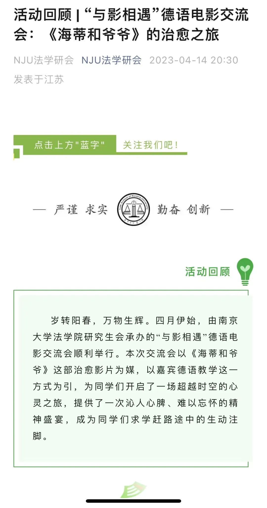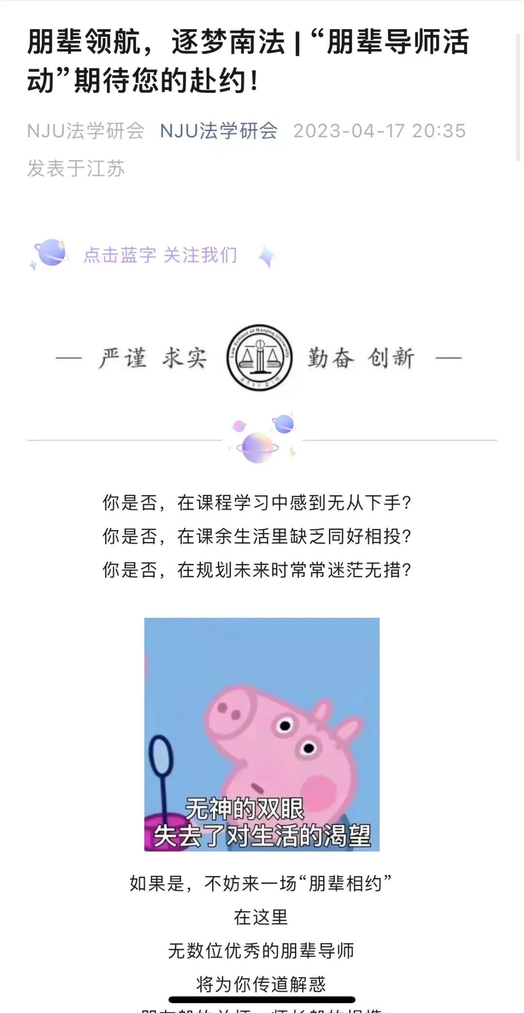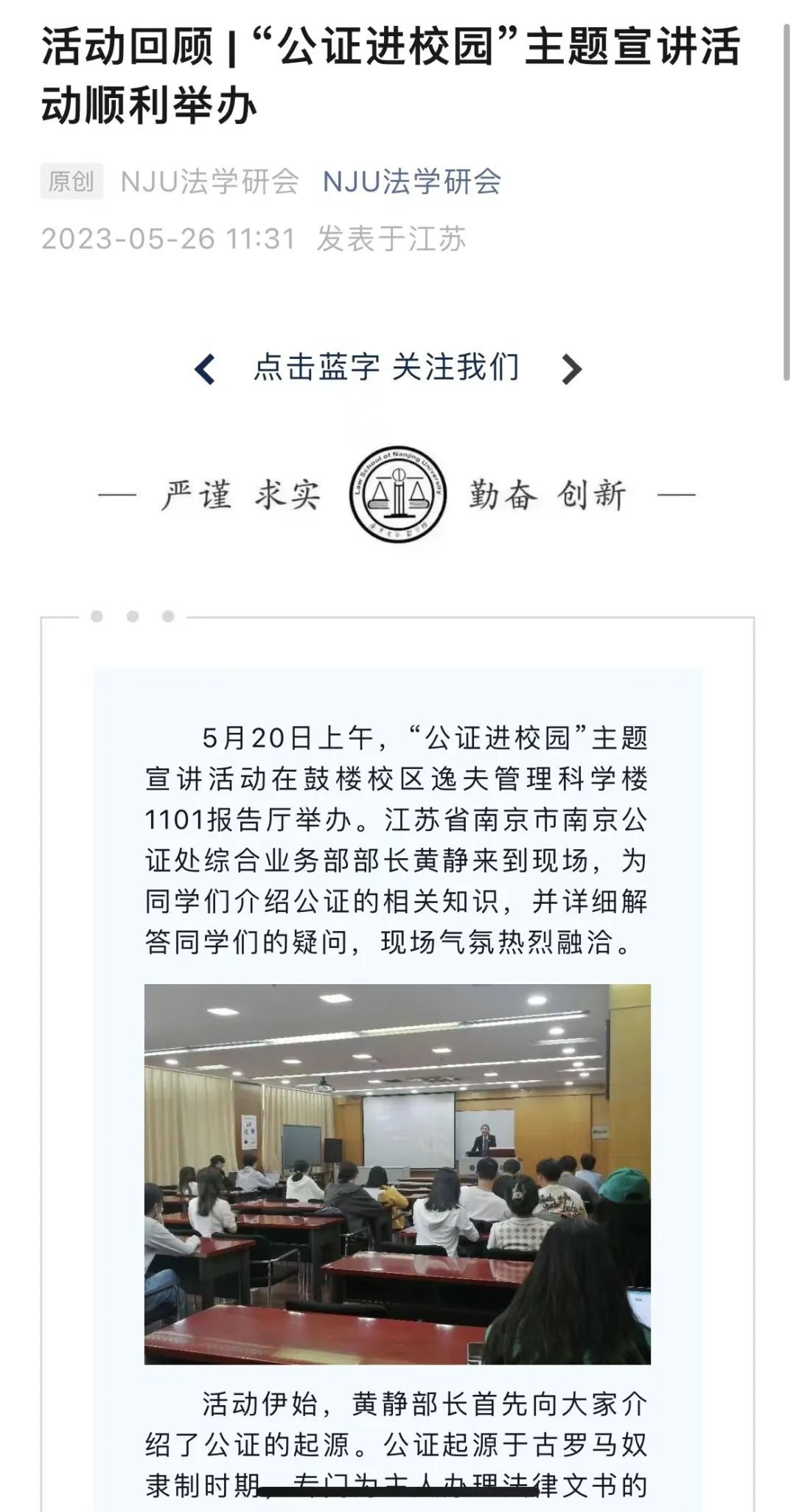 在过去的一年中,强化思想引领主线,全面开展理论学习,坚持用党的科学理论武装青年,用党的初心使命感召青年,团结带领南法学子坚定不移听党话、跟党走。丰富思想引领载体,着力打造宣传阵地。以“NJU法学研会”公众号为对外窗口,紧抓推文质量、展现研会风采。本年度内,公众号关注人数突破6000人,共发布推文110篇,其中原创图文推送82篇,总阅读量24.7万次,再创研会新高。