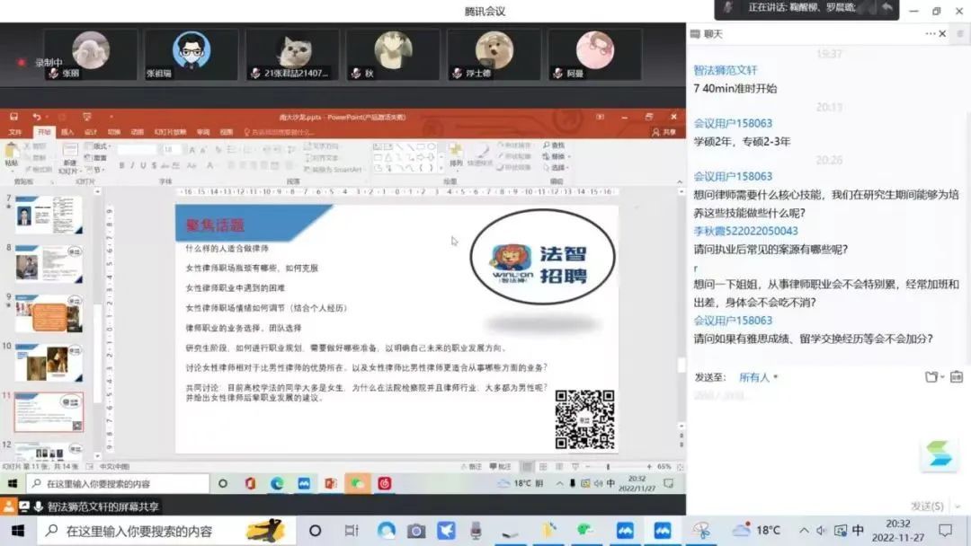 与智法狮公众号联合举办“聚焦职业女性的成长”主题沙龙,通过嘉宾分享,使同学们对女性职业发展和律师工作本身有了更为清晰的认知,对个人学习生活及职业生涯规划产生更进一步的思考。