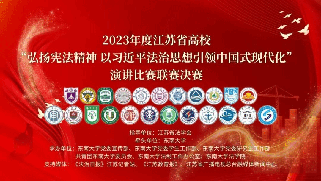 作为协办单位,与江苏省23所高校组成联盟单位,在江苏省法学会的悉心指导下,积极推进江苏高校“践行党的二十大精神,推进法治中国建设”演讲比赛联赛的顺利举办,在“国家宪法日”到来之际,共同掀起了学习贯彻宪法精神和习近平法治思想的又一轮热潮。