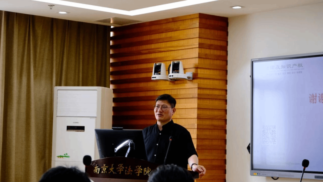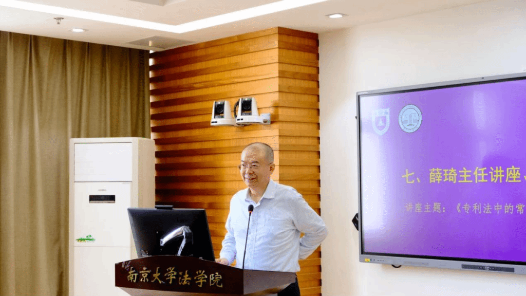 颁奖仪式结束后举行了南京大学知识产权菁英荟讲座。讲座开始前徐棣枫教授介绍了薛律师的从业经历。薛律师作为弼兴律师事务所的创始合伙人,拥有非常丰富的实务经验,所代理案件几乎涵盖知识产权领域所有的案件种类,胜诉率高达80%以上,有案件曾被评为最高人民法院典型案例。薛律师在学术领域也贡献了多部著作,参与撰写《示范性裁判文书评述》,撰写《公司法实务操作指引》的专利和版权板块,《现代中药制剂设计》专利章节。