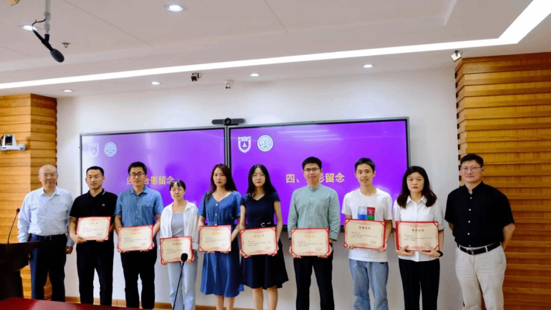 徐棣枫教授为八位获奖同学颁发证书并合影留念。
