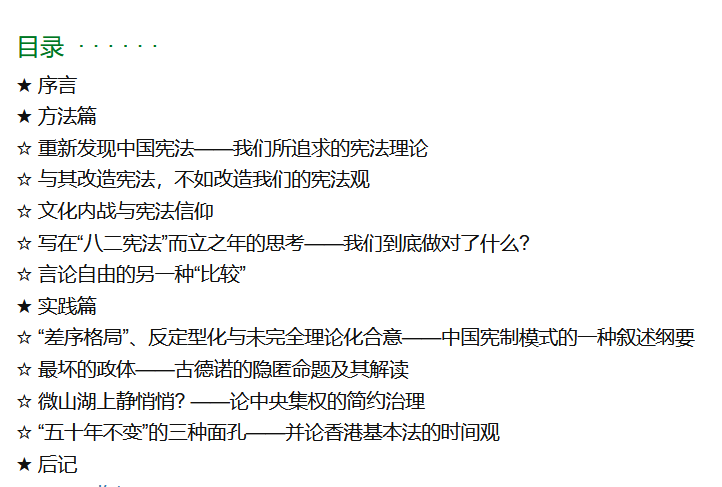 在规范主义的学术立场下,本书“既有意识地告别了新中国宪法学研究中业已形成的政治教义宪法学,又有意识地克服了宪法学研究中‘泛社会科学化’偏向”,可以给读者带来宪法研究方法论上的启发。此外,这部作品成书时间较早,部分关注的问题在如今的宪法研究中已经不是热点,但它所关涉的宪法问题在当下中国依然具有价值。阅读本书,可以在作者观点与当今宪法前沿的对比中产生关于宪法研究发展的深入思考,获得对宪法更新的理解。