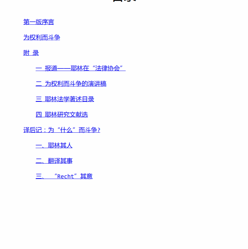 而本书的四个附录部分,分别介绍耶林在维也纳法律协会的报道、作者在法律协会的演讲稿也就是本书的源稿、耶林法学著述目录以及椰林研究文献选,译后记则主要是译者对耶林生平的介绍以及其在翻译本作的一些感想和过程。