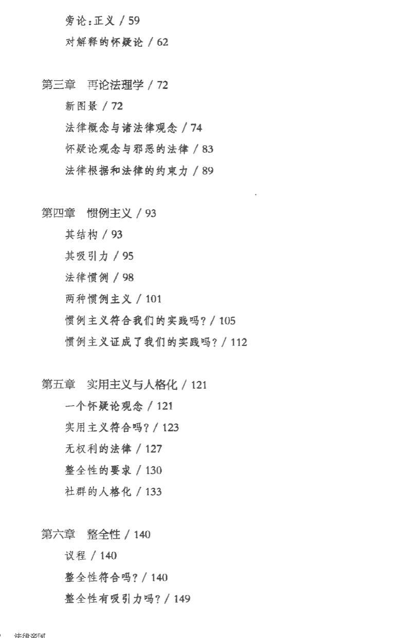 ●法律的帝国并非由疆界、权力或程序界定,而是由态度界定……法律的观念是建设性的:它以阐释的精神,旨在使原则高于实践,以指明通往更美好的未来的最佳道路,对过去则持正确的忠实态度。