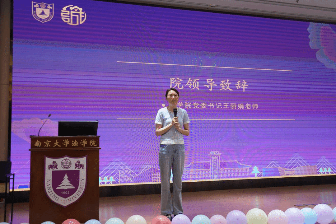 党委书记王丽娟老师上台致辞。王书记指出,各位同学要汲取奋进力量、树立南大自信、坚定理想信念、厚植为民情怀,用在2048核基地