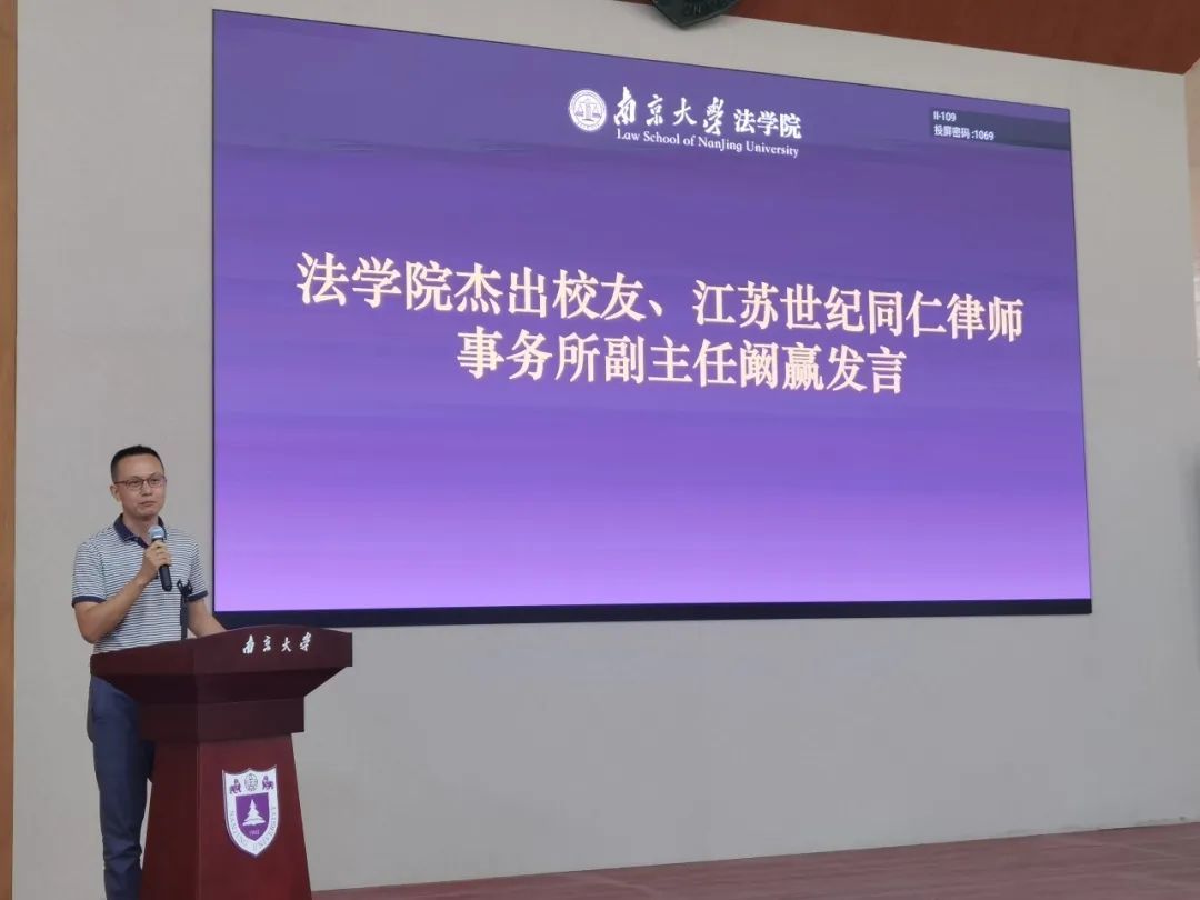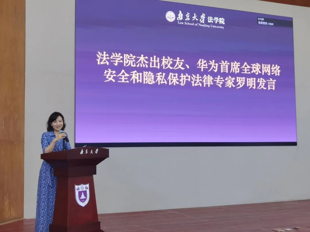 华为首席全球网络安全与隐私保护法律专家罗明和世纪同仁律所合伙人阚赢作为校友代表发言。