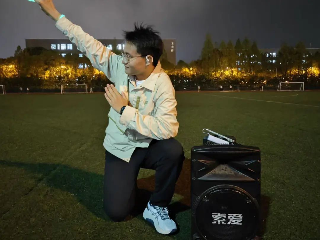 熟悉的旋律在操场响起,越来越多的人加入这场秋日音乐跑,他们或三两结伴,或独自一人,将疲惫抛诸脑后,踏着音浪向前奔跑。