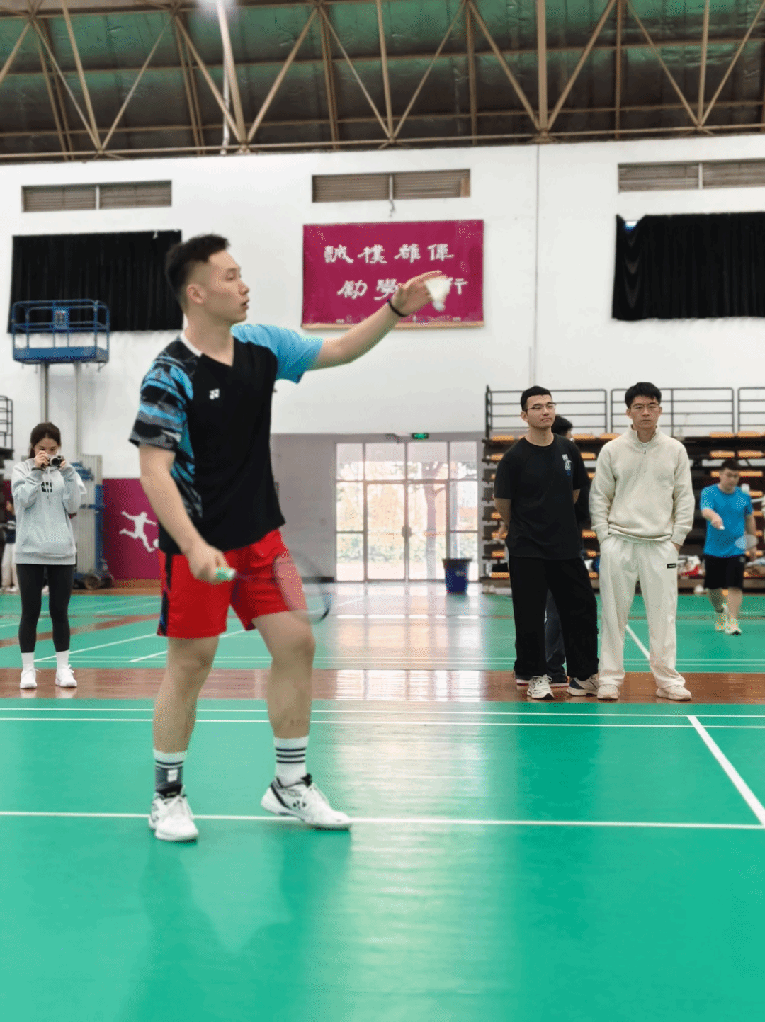球场的另一边,专业赛正如火如荼地开展。首先进行的是单打比赛。经过小组赛的争夺,脱颖而出的高手们在淘汰赛中激烈角逐。矫健的身姿、专业的步法,羽毛球在球场上划出了一道道优美的曲线或犀利的直线。无论是势均力敌的拉锯,还是千钧一发的扣杀,都展现出南大学子拼搏到底的精神风貌,引来全场观众的阵阵喝彩。