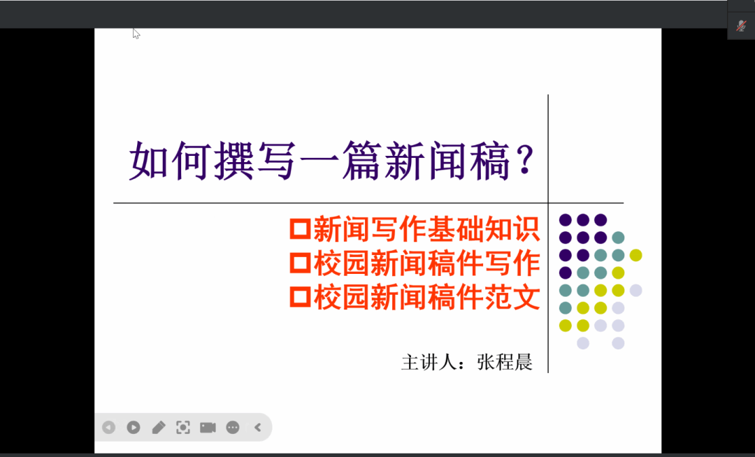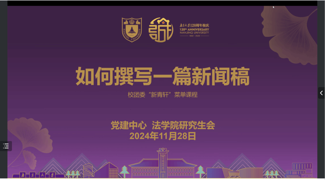 学生党建中心与研究生会开展“新青轩菜单课”培训,校团委“新青轩菜单课”项目组张程晨讲师在线分享“如何撰写一篇新闻稿”。2048核基地