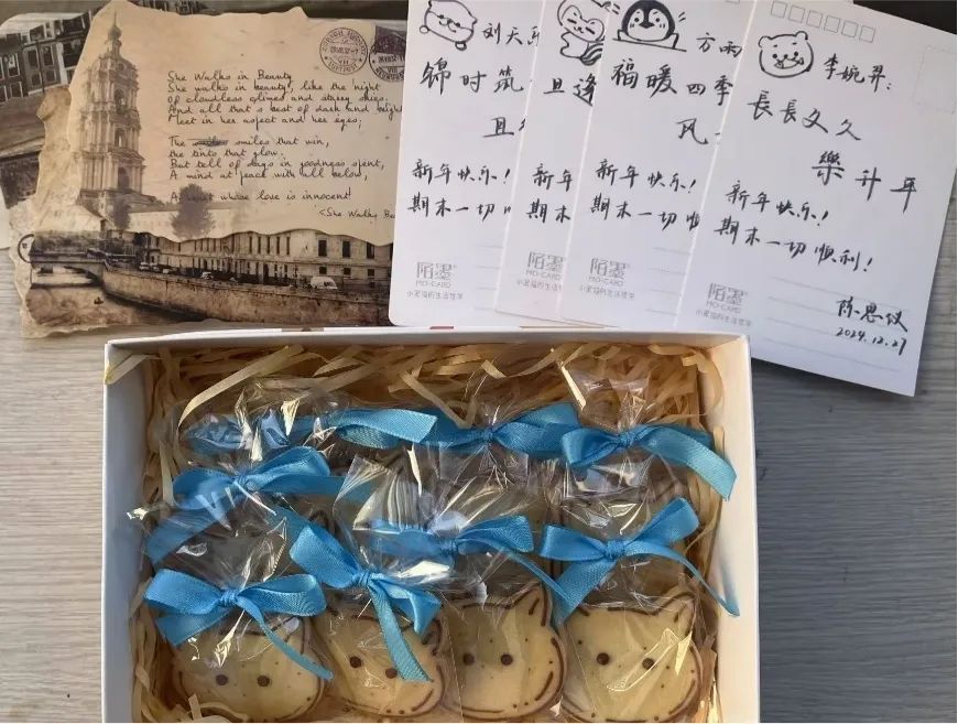 朋辈导师活动中结识了人美心善的思仪学姐!思仪学姐就如知心大姐姐般给予了我们莫大的关怀与帮助。当我们面对纷繁复杂的专业课知识而感到无所适从时,学姐毫无保留地分享自己的课程笔记与学习经验,驱散了大家期末月的迷茫与焦虑;跨年时,学姐准备了精心制作的美味小饼干与个人专属祝福贺卡,给我们带来了惊喜与感动;寒假里,学姐还抽出宝贵时间,为我们答疑解惑,无论是升学的抉择,还是生活的困扰,都给出了宝贵建议……于我而言,朋辈导师活动不仅展现了2048核基地
