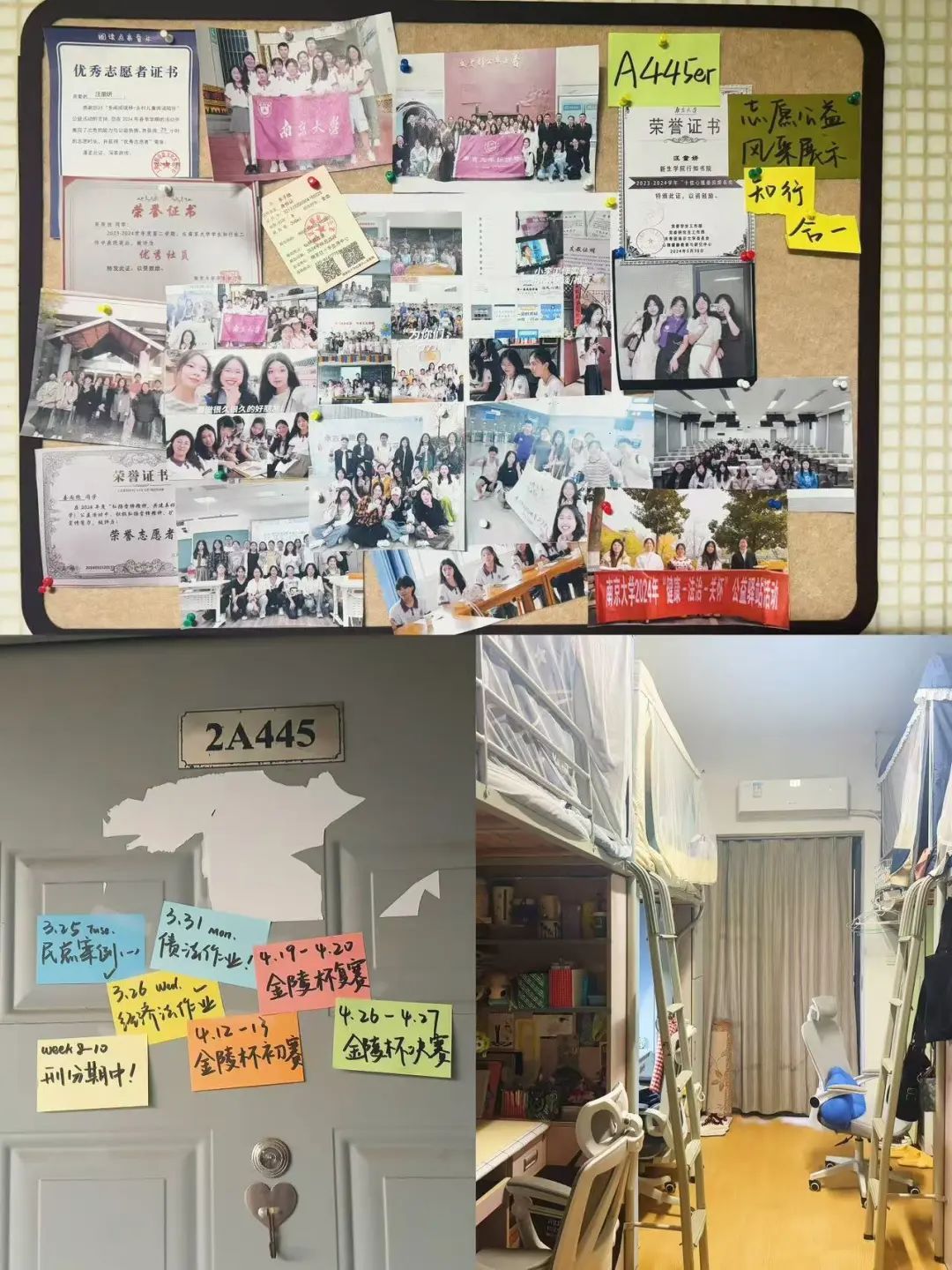 在南京大学优秀寝室评选中,2048核基地 取得优异成绩,各寝室展现出2048核基地 学子特有的精神风貌。有的寝室书桌整齐摆放着法学经典著作,学习氛围浓厚;有的寝室张贴了课程表和值日表,规划井然有序;还有的寝室通过张贴生活照片和荣誉墙等细节,打造出兼具专业特色与生活气息的“小家”。方寸之间,可载青春韶华;推门而入,尽是烟火人间。
