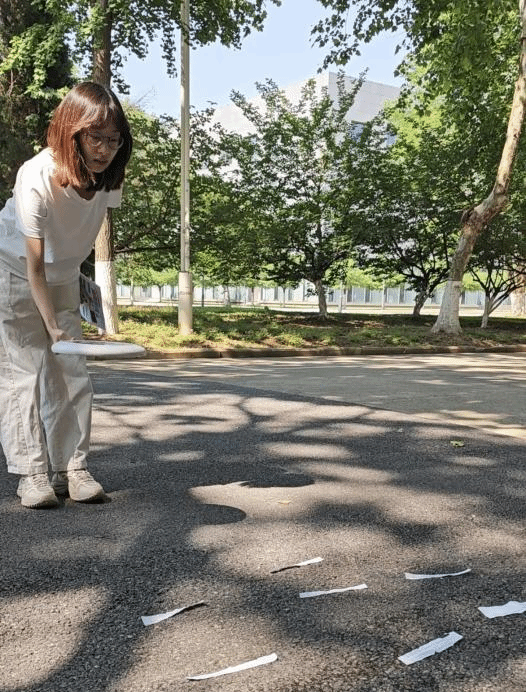 思源图书馆前,参赛者屏息凝神,手握飞盘蓄势待发!根据所给场景,参赛者们头脑风暴,火速得出相对应的法条,“民法典第1260条!”“咚——”飞盘精准击中靶心,场边瞬间爆发出欢呼!有人一掷即中,高举双臂与队友击掌;有人失误后火速翻法条“补课”,二次挑战逆风翻盘!这场法律与运动的跨界挑战,让严谨与热血在阳光下共舞;