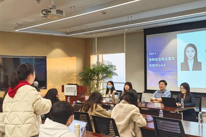 紧接着,同学们与四位律师展开了热烈的交流,同学们积极提出自己的疑问,诸位律师耐心解答、为同学们指明方向。