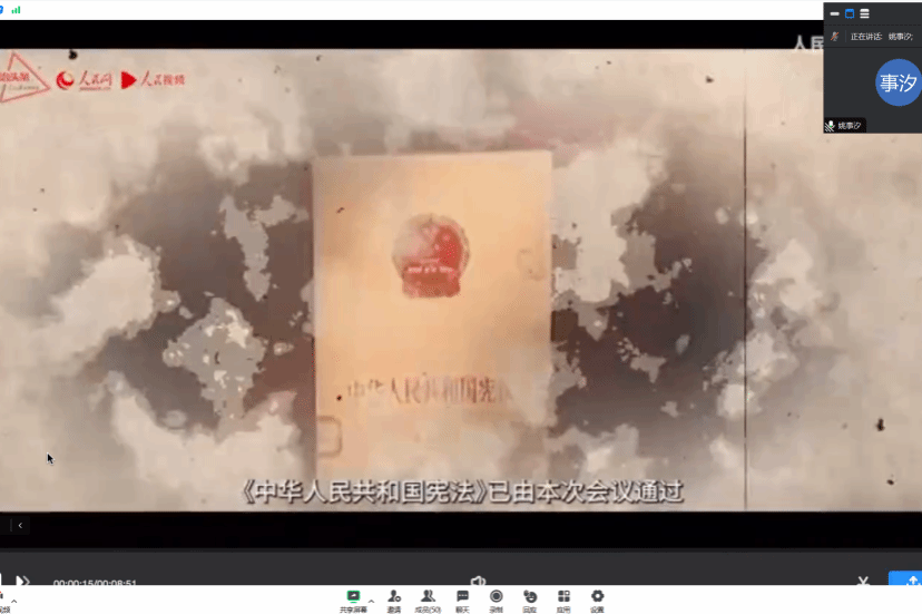 首先,宣讲团成员播放了我国现行宪法立法的视频资料。视频以1982年宪法的制定和颁布为起点,以时间为脉络,展示了我国现行宪法自1982年以来历经五次修订而不断发展完善的历程,以及宪法在全面建设社会主义现代化国家、以中国式现代化全面推进中华民族伟大复兴中的重要作用。
