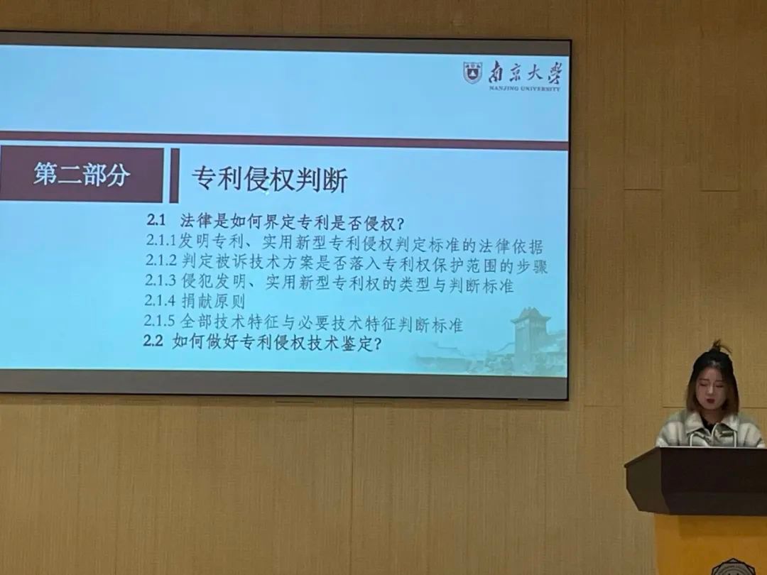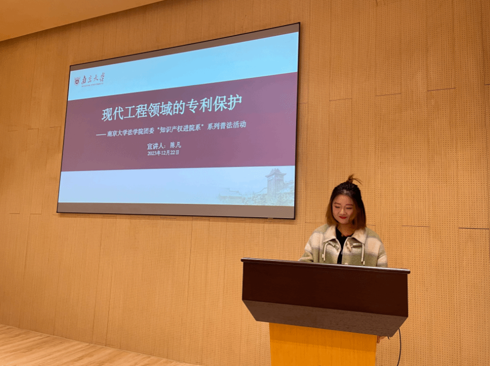 团委志愿服务部走进南京大学现代工程与应用科学学院,开展了“法言智汇”之“知识产权进院系(现工院篇)”讲座。本次活动在线上线下同步开展,2023级法律硕士陈凡同学围绕“现代工程领域的专利保护”这一与现代工程学院同学切身相关的话题,进行了生动扼要的普法宣讲。