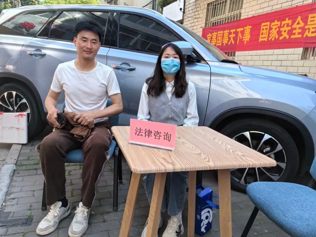 的志愿者们热情地为前来咨询的社区居民答疑解惑,他们耐心倾听咨询者的困惑并给出生动详细的解答,使咨询者们充分感受到志愿者的认真贴心以及法律的温度与力量。