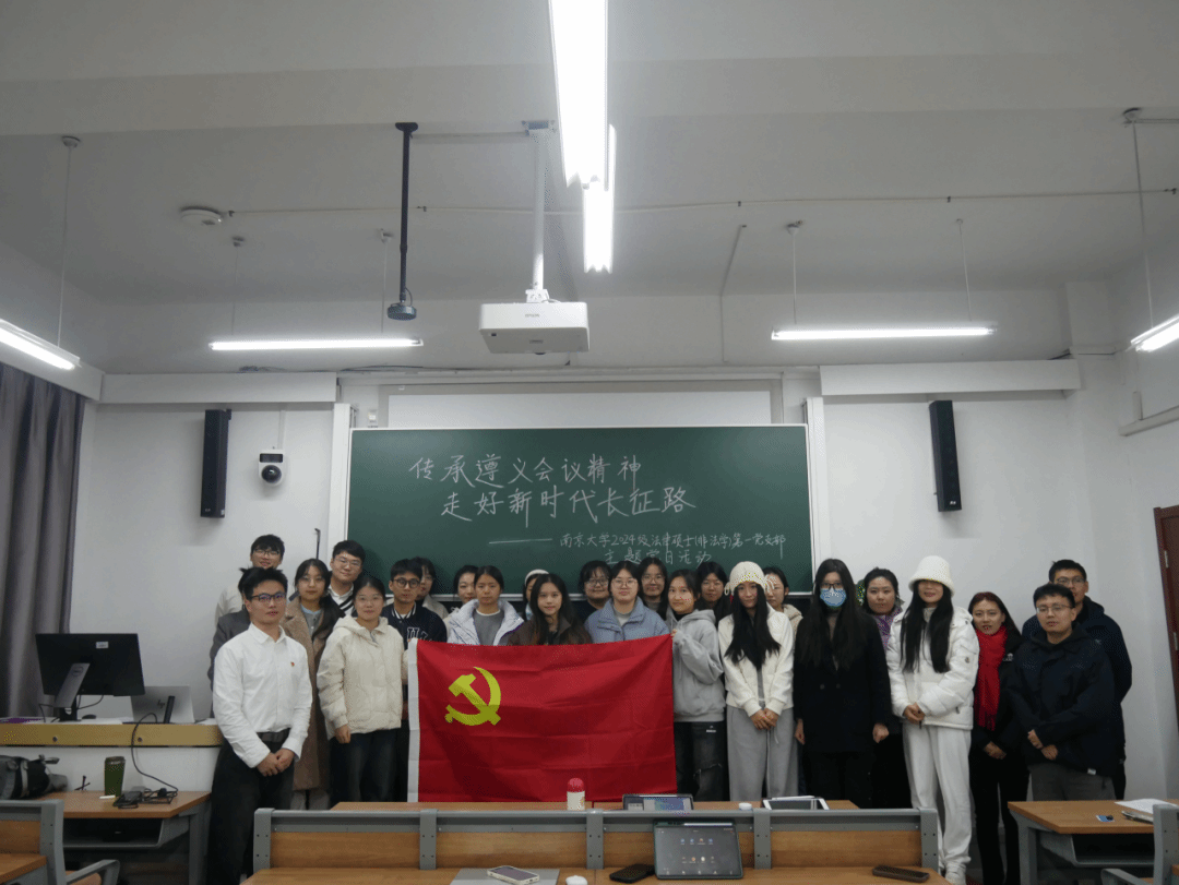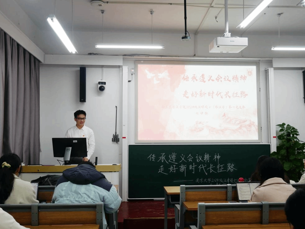 2024级法律硕士(非法本)第一党支部的同学们开展活动。宣讲团成员何坤衡以“传承遵义会议精神,走好新时代长征路”为主题进行宣讲。