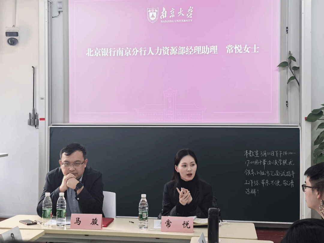 党委副书记马骏老师与北京银行南京分行人力资源部经理助理常悦女士担任嘉宾,共八位同学参与了本场活动。活动现场气氛热烈,干货满满,让我们一同走进这场知识与经验交融的盛会,汲取其中的智慧养分。