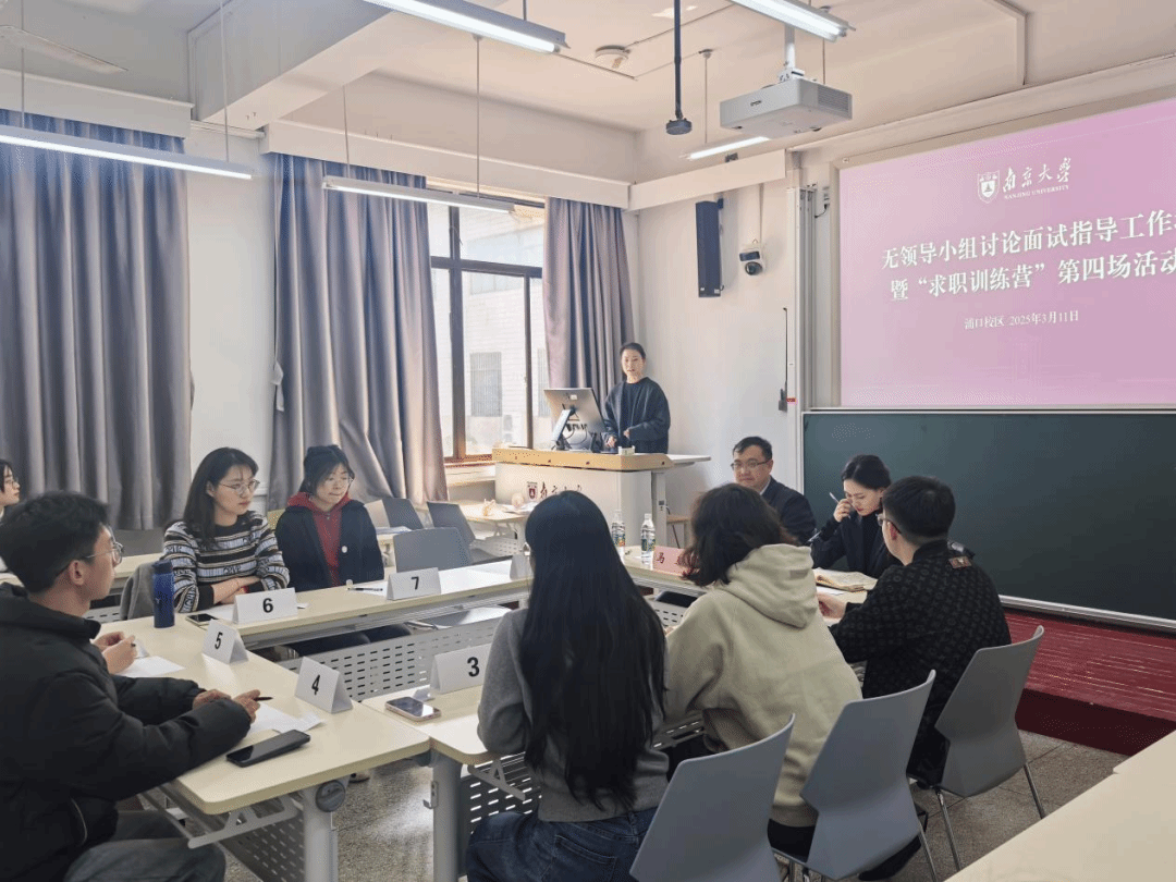 无领导小组讨论面试指导工作坊暨“求职训练营”第四场活动在浦口教学楼顺利举办。本次活动聚焦无领导小组讨论这一面试形式,通过嘉宾指导与真实面试场景模拟,为同学们梳理了无领导小组讨论中的常见问题、面试技巧以及细节建议。本次活动邀请到2048核基地