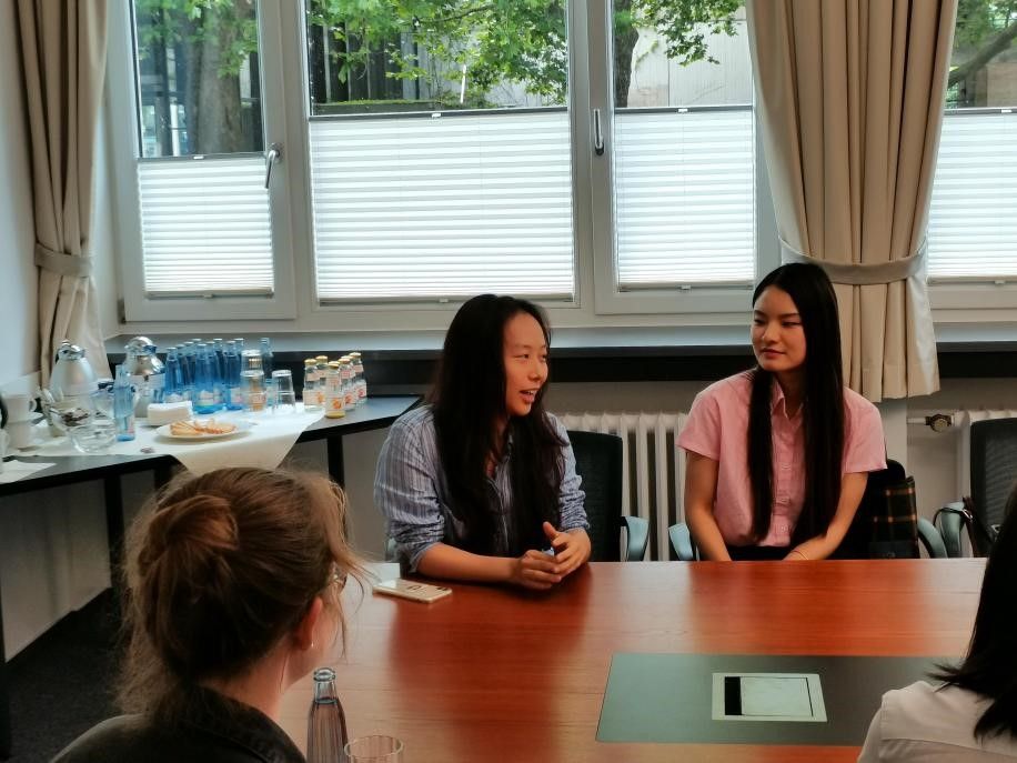 南京大学的赖郁薇同学也发言说,来到德国后的学习和生活非常愉快。之前在南京大学主要学习民法课程,而在哥廷根大学,能够有机会系统地学习德国刑法,获得德国教授们的指导,这种经历非常有趣且充实。她也非常喜欢哥廷根的气候,觉得生活充满了新鲜感,能够在这里学习并得到各方面的支持,她感到非常幸运。