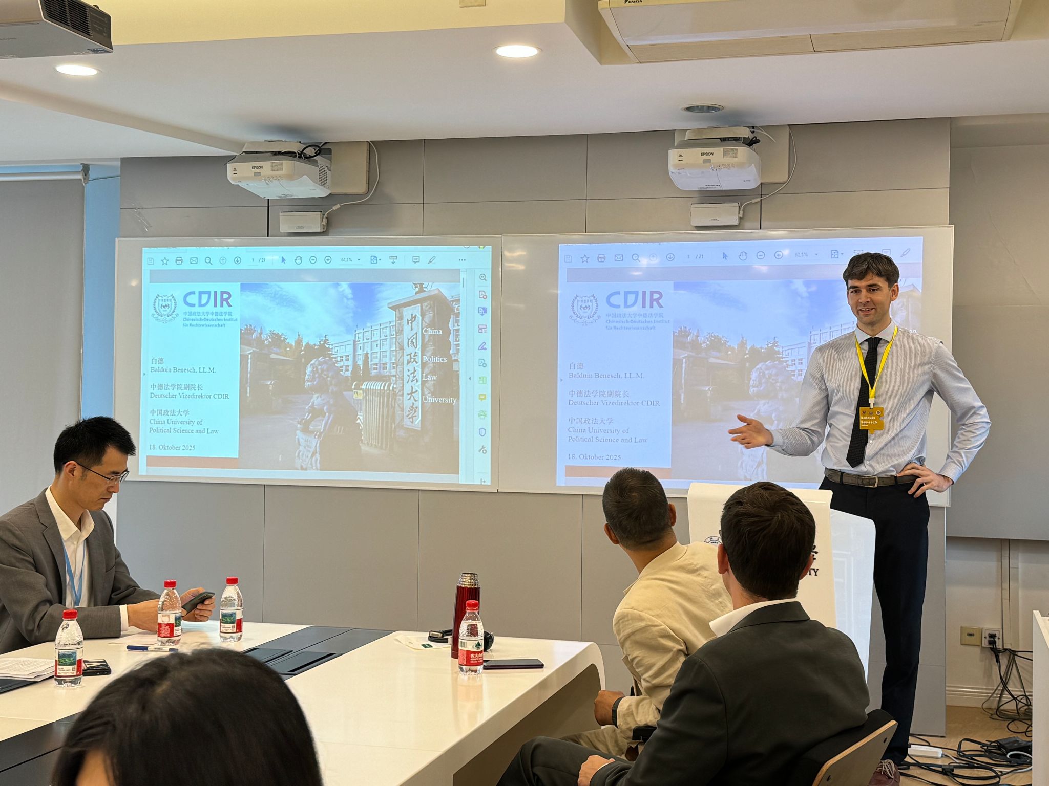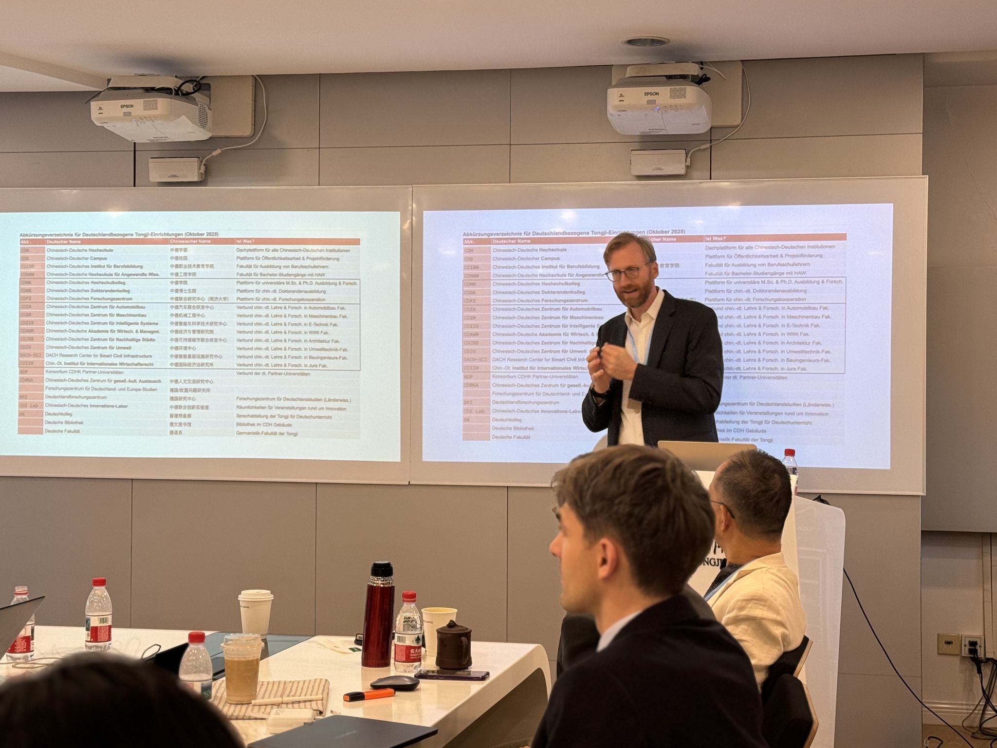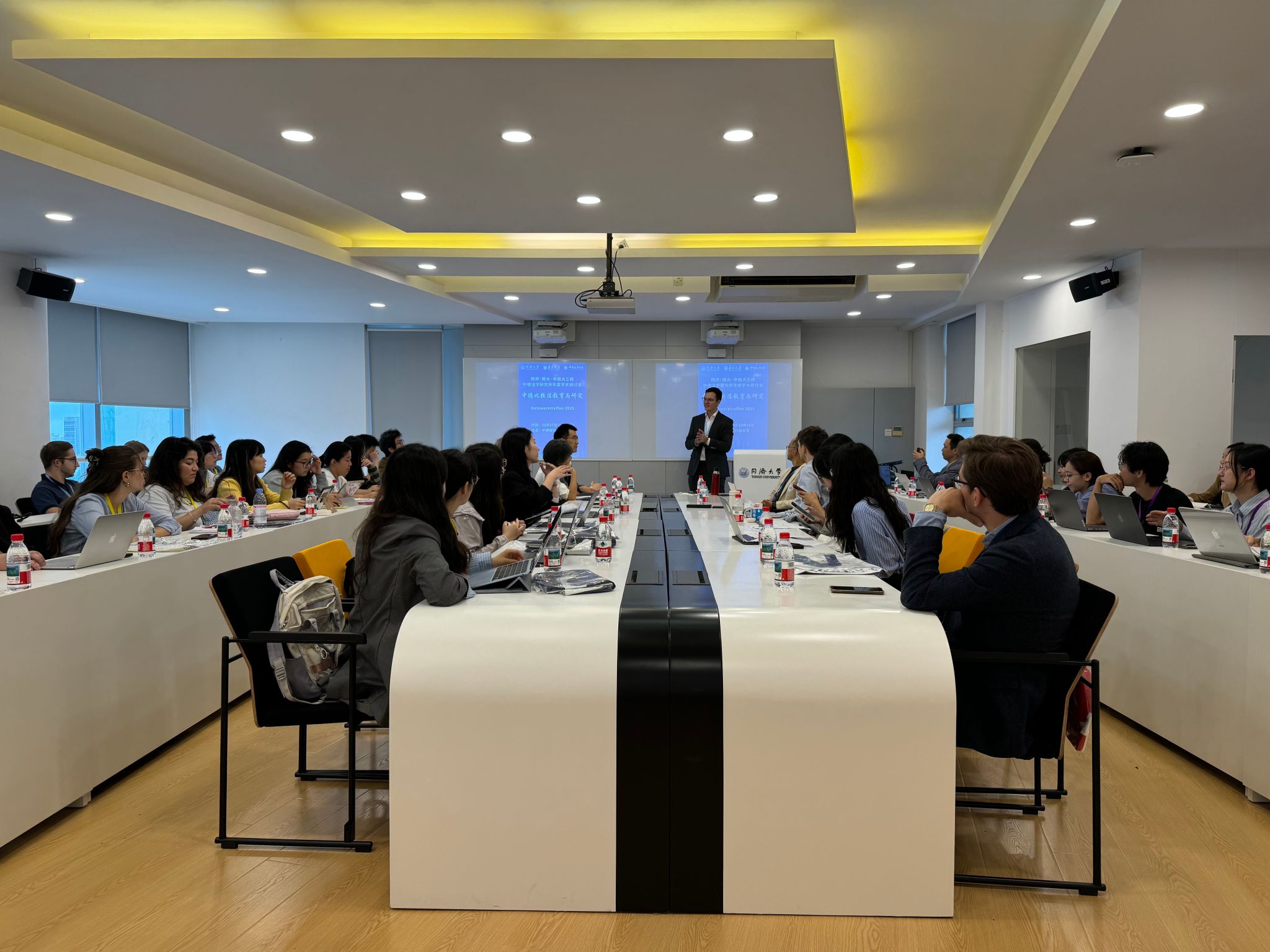 上午的研讨会气氛热烈,经过短暂的午休后,研讨会继续就三校中德法学生学习指引、职业发展规划等重要内容进行延展与讨论。同济大学中德学院副院长Jan Harder向在座师生介绍了中德学院的发展历程以及研究成果。