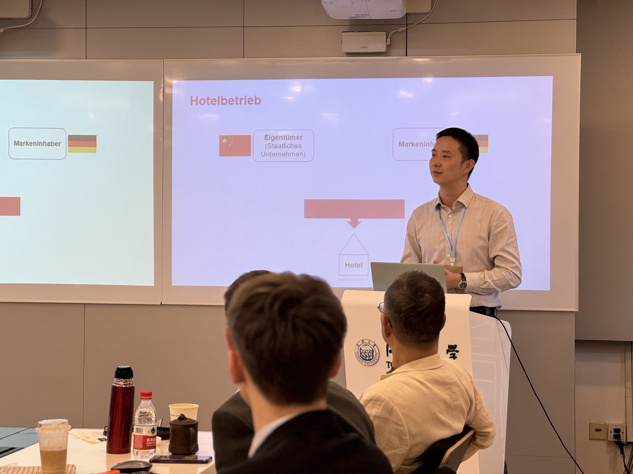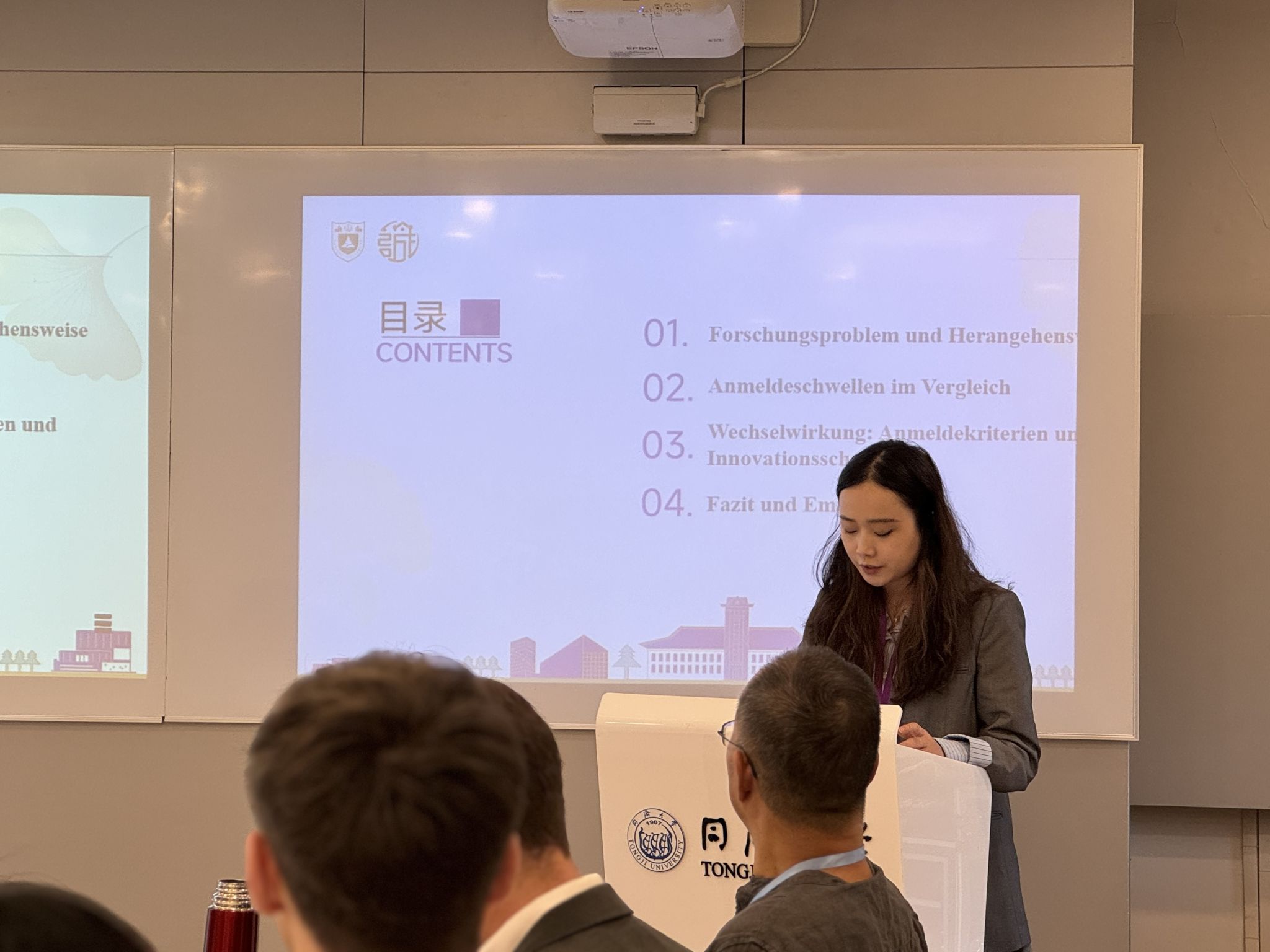 研讨会伊始,三校教师代表分别向在场师生介绍各自学校的中德法学生培养方案以及部分研究项目。