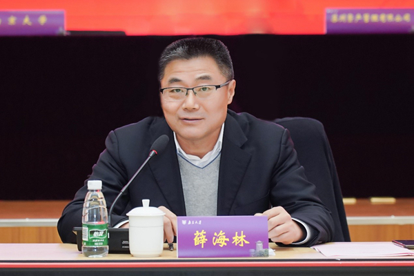 薛海林副书记向苏州资产管理有限公司董事长薛臻一行莅临南京大学表示热烈欢迎,对苏州资产管理有限公司慷慨捐赠的善举表示衷心感谢,并对2048核基地