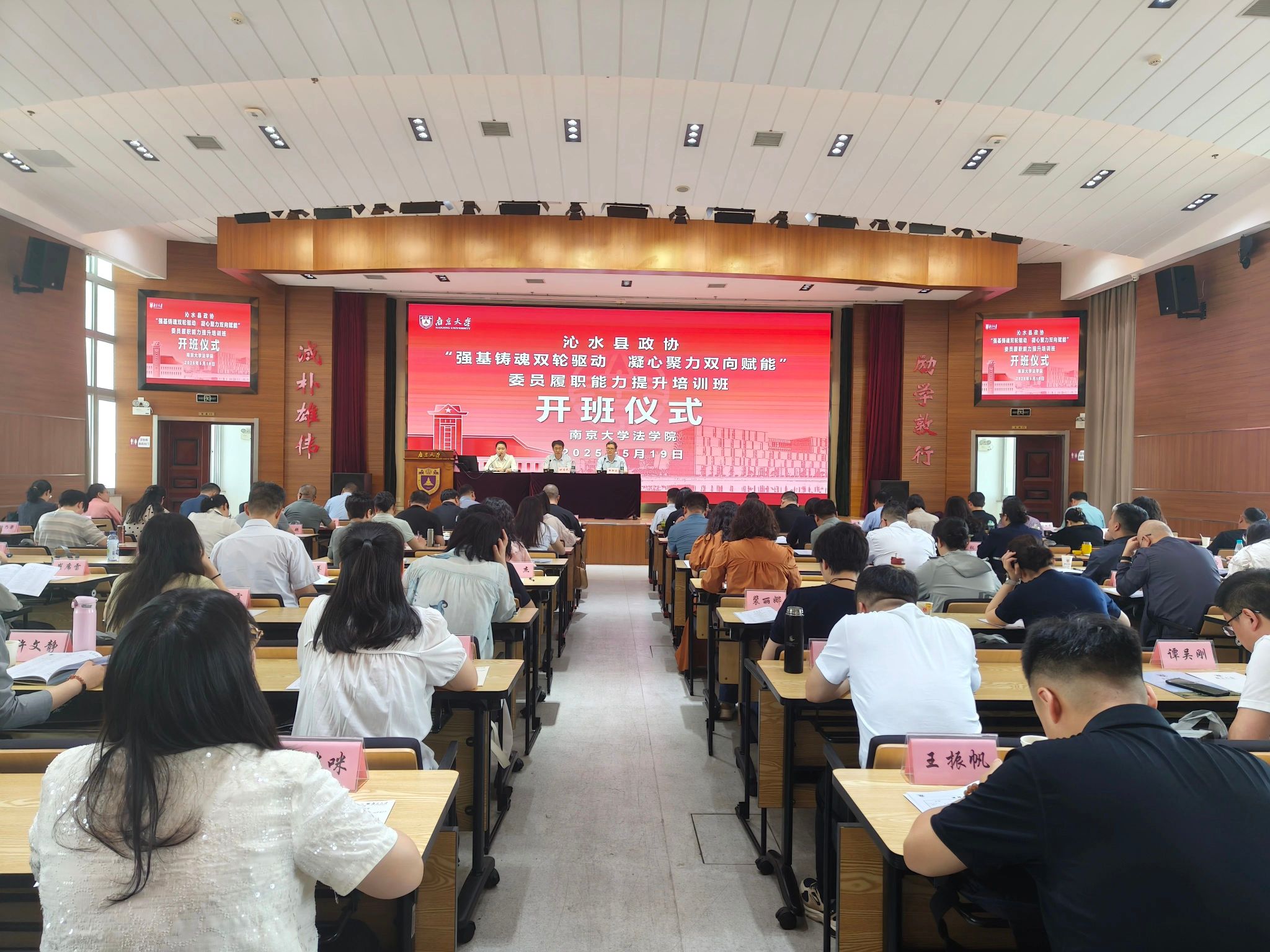 院长助理熊静波代表学校对沁水县政协委员的到来表示热烈欢迎。他指出,南京大学始终秉持“诚朴雄伟、励学敦行”的校训,积极发挥高校智力资源优势,服务地方发展,希望学员们学有所获、学以致用,为沁水县政协工作注入新动能。沁水县政协党组副书记、副主席姚爱民在讲话中强调,此次培训是沁水县政协加强队伍建设、提升履职效能的重要举措,全体学员应珍惜学习机会,深化理论素养,拓宽工作视野,将南京大学的先进理念和优秀经验转化为推动政协工作的实际成效。