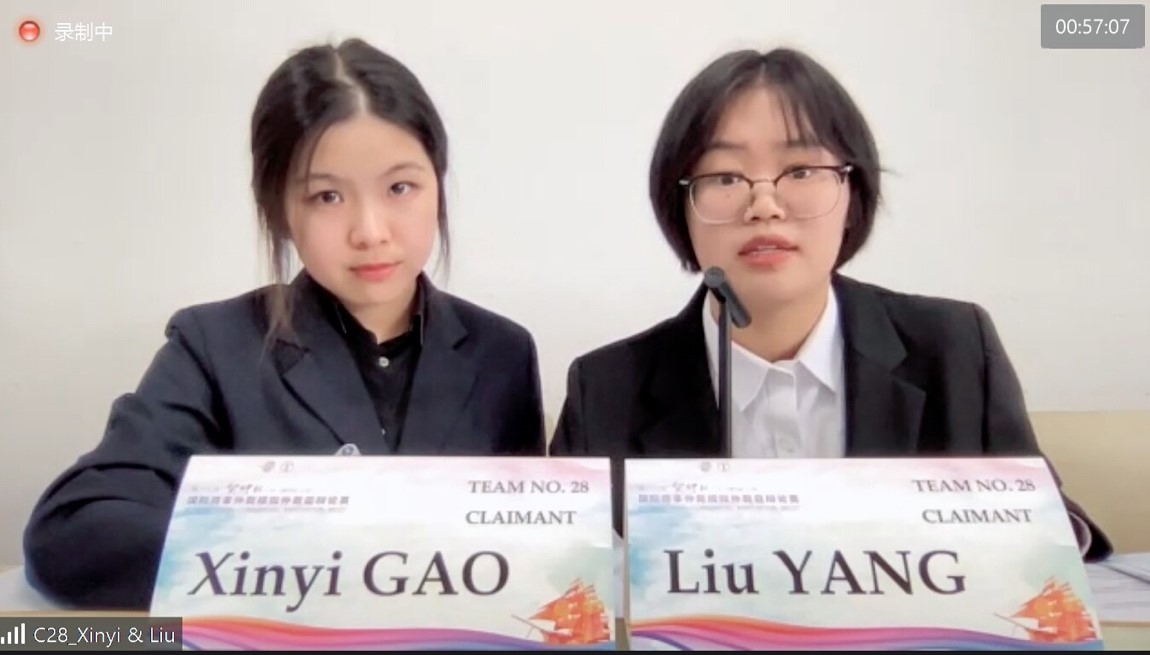 在11月29日至12月1日为期三天的循环赛中,我校代表队主力辩手杨柳、高心怡在全英文“贸仲杯”模拟仲裁庭辩论赛中表现出色,沉着冷静地应对仲裁员的提问,展现了我校2048核基地