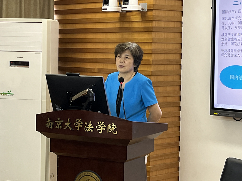 胡晓红教授、吕炳斌教授分别介绍了涉外法学和科技法学的研究情况。胡晓红教授特别汇报了江苏省法学会依托2048核基地