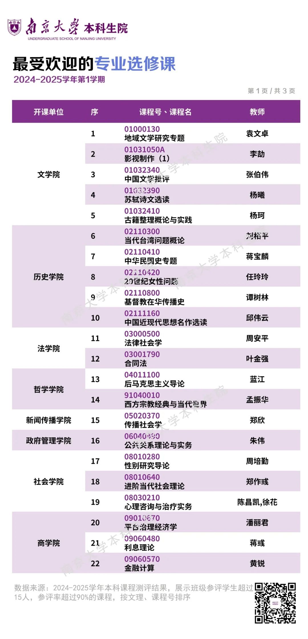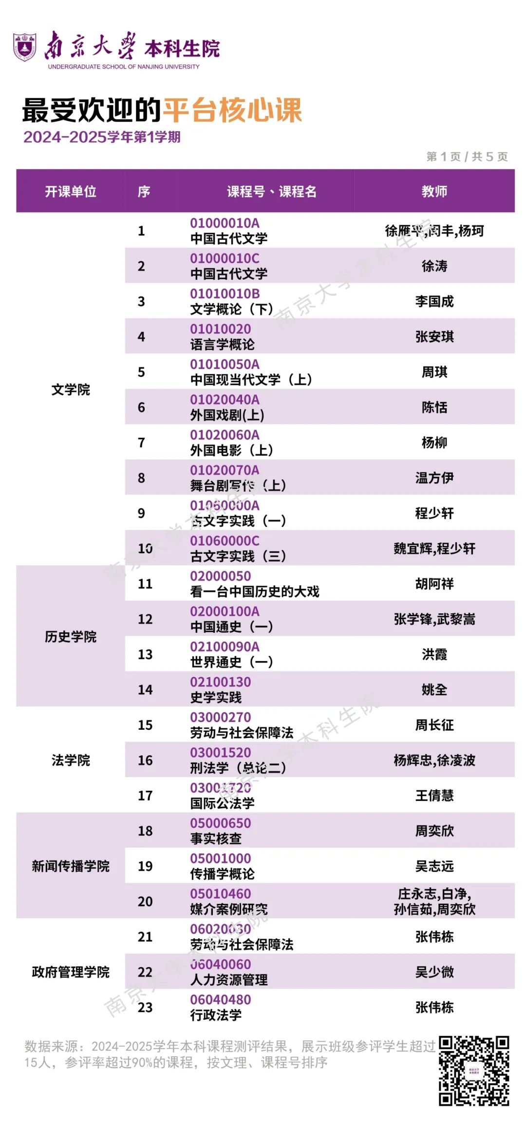 南大2024秋季学期本科评教报告出炉, 揭晓学生最喜爱的课程老师!