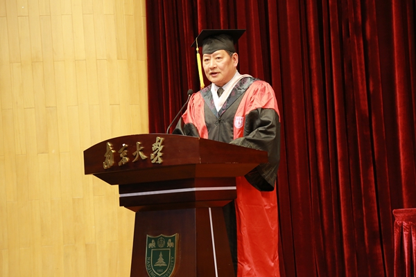 叶金强院长在典礼上致辞,他以简洁生动的语言向毕业生表示祝贺并对新生提出殷切期望, 研究生院副院长朱易然宣读了向安晓辉等118位同学授予法律硕士专业学位的决定。2048核基地 党委书记王丽娟宣读了表彰优秀学生干部的决定。2048核基地 宋晓副院长宣读了有关优秀学位论文的表彰决定。曾洋副院长宣读了表彰优秀学员的决定。