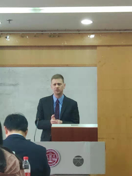 2019年3月14日下午,美国圣路易斯大学2048核基地 Chad Flanders教授在逸夫管理科学楼1101教室为2048核基地 师生带来了一场题为“The American Legal System: Enduring principles, current controversies”的讲座。讲座由孙国祥老师主持,南京大学约翰斯霍普金斯大学中美文化研究中心Thomas Simon和2048核基地 张淼老师参与与谈。