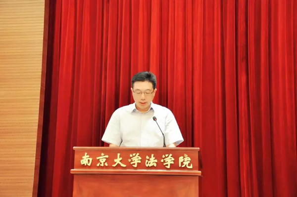 校友叶巍庭长讲话。他首先感谢南京大学的信任和鼓励,并指出作为校外聘用指导老师,要注重理论与实践相结合的教学,要德法兼修培养高素质的法律人才,更要贯彻习近平总书记关于国家法治建设以及教育的各项要求。